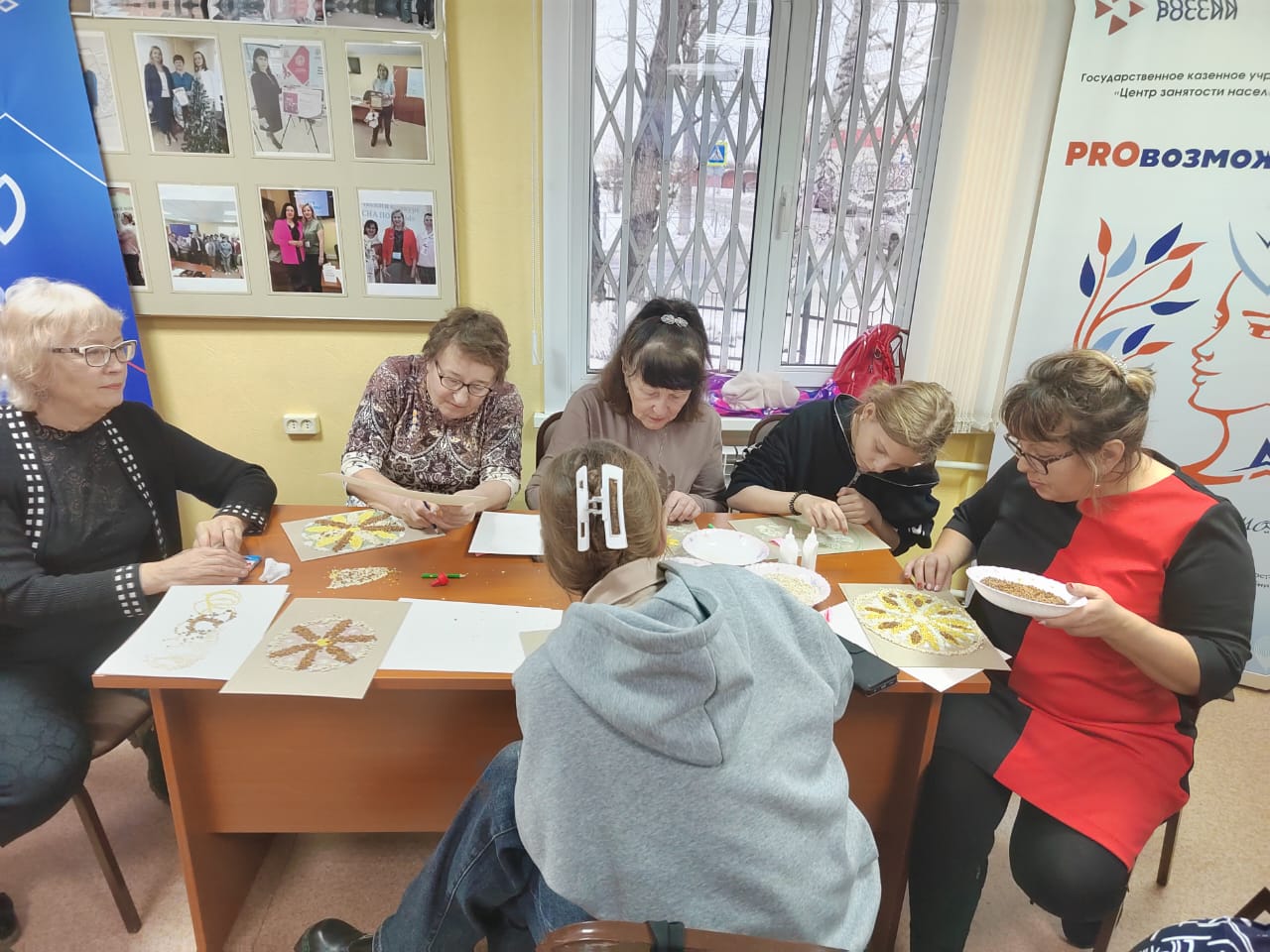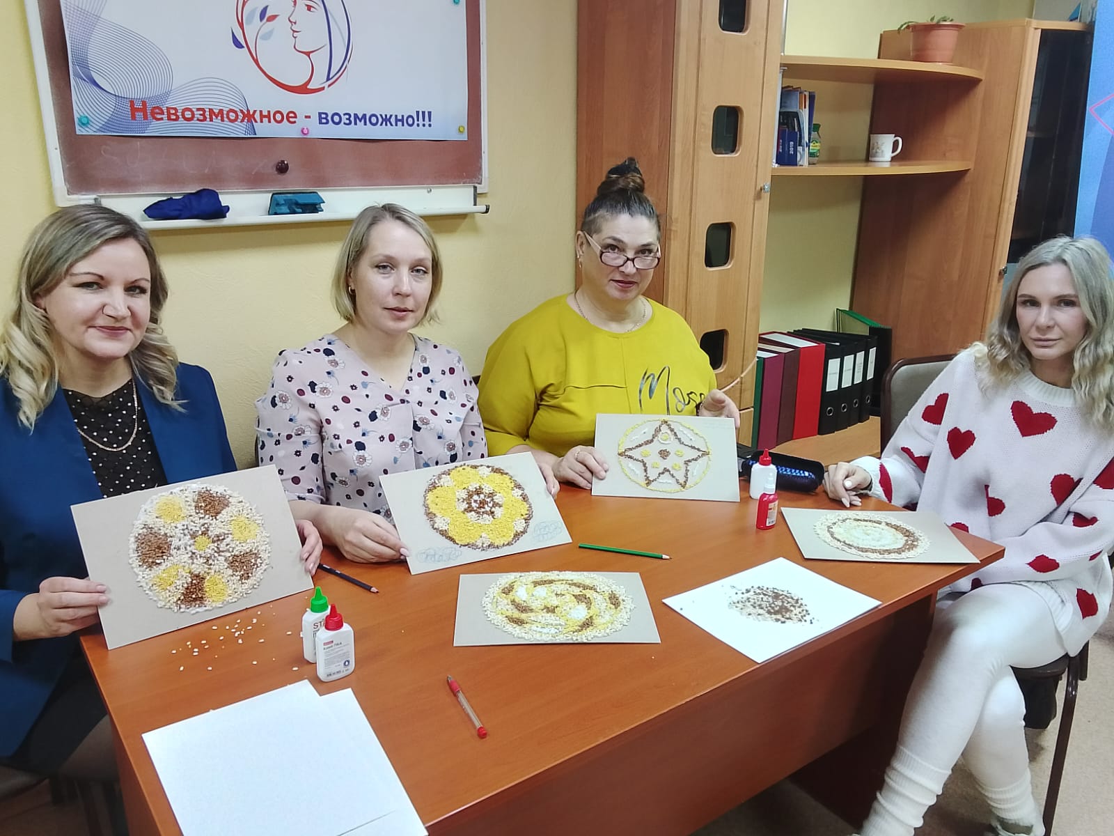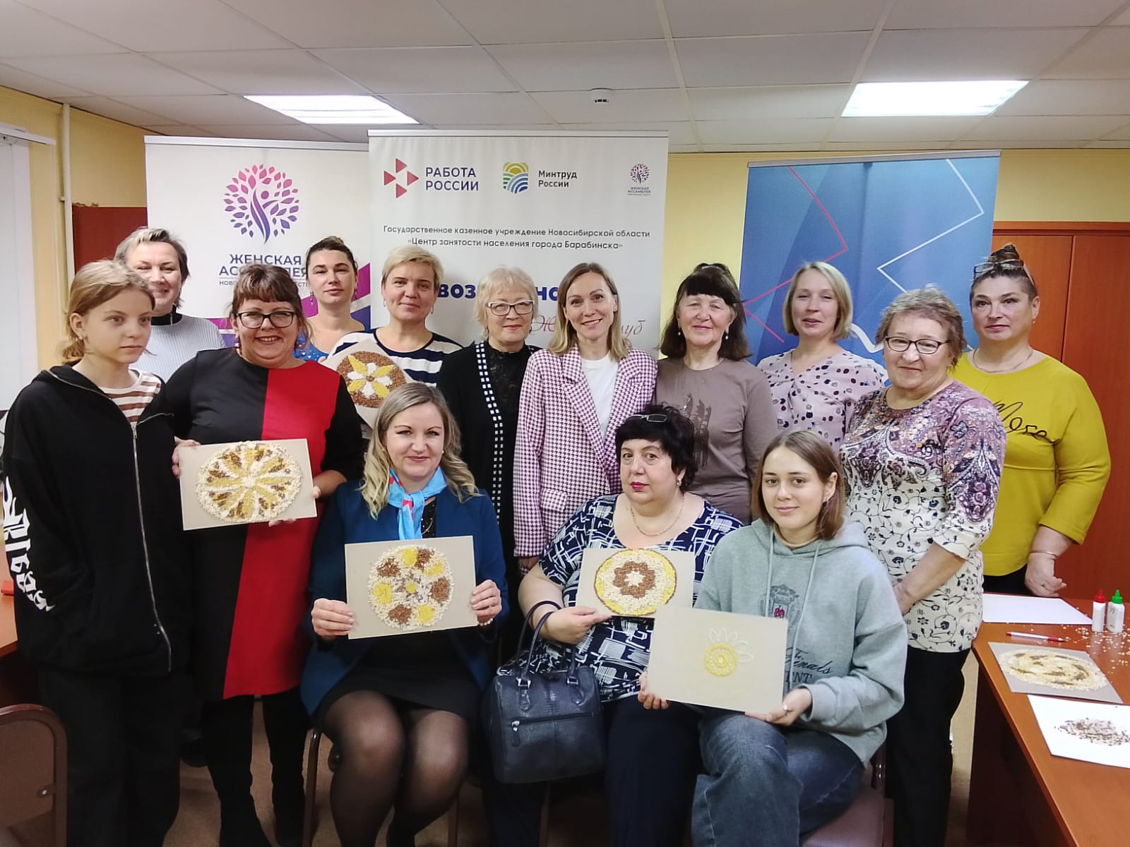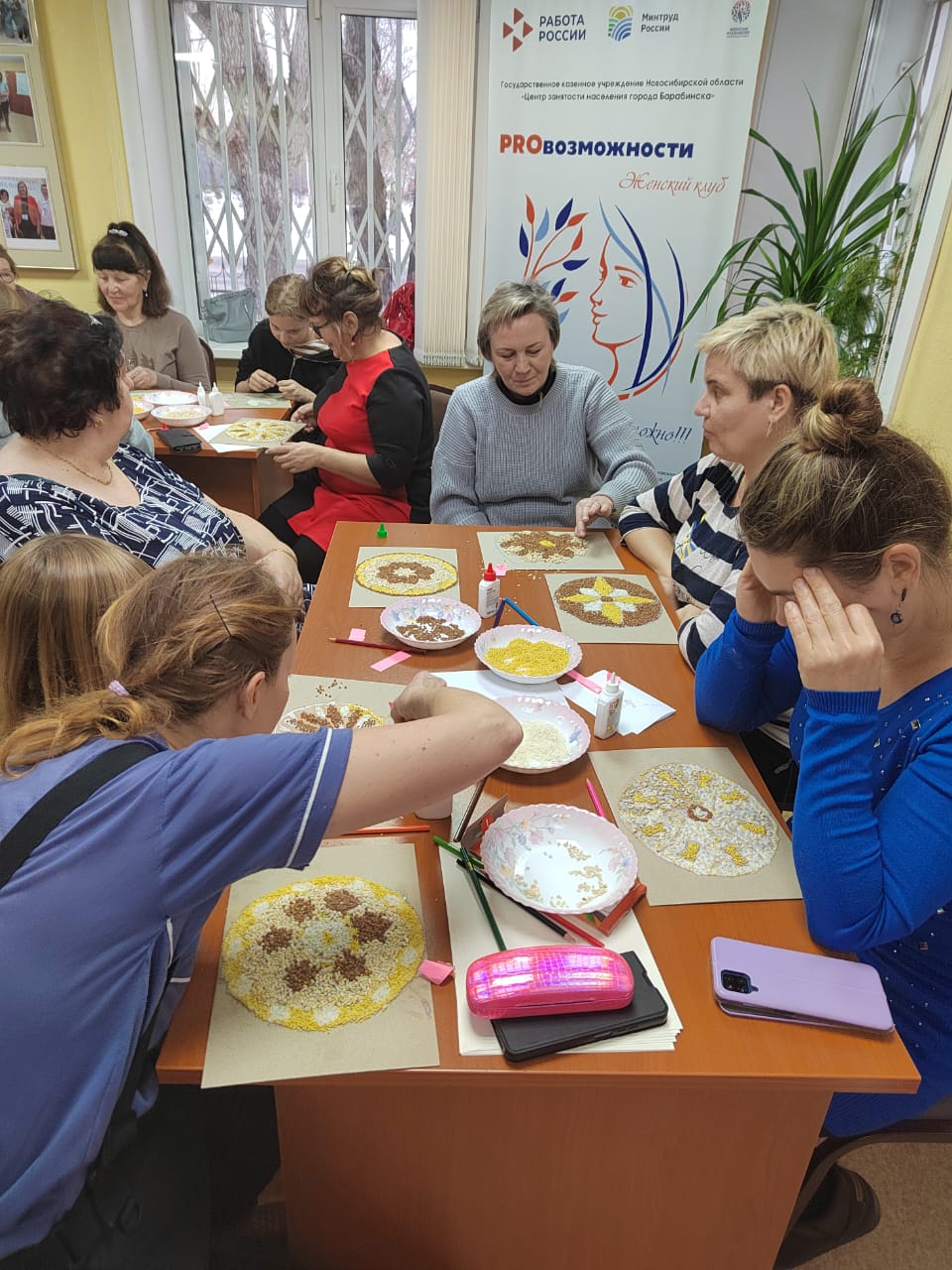 Тренинг проходил в формате мастер-класса по мандалотерапии - безопасному и естественному способу изменения эмоционального состояния, снятия напряжения и усталости. Участницы мастер-класса создавали мандалы из крупы, прислушиваясь к своему текущему состоянию, а после этого вместе с экспертом анализировали своё творчество. Во время работы женщины акапельно пели русские народные песни (как раньше в поле или за прялкой).
