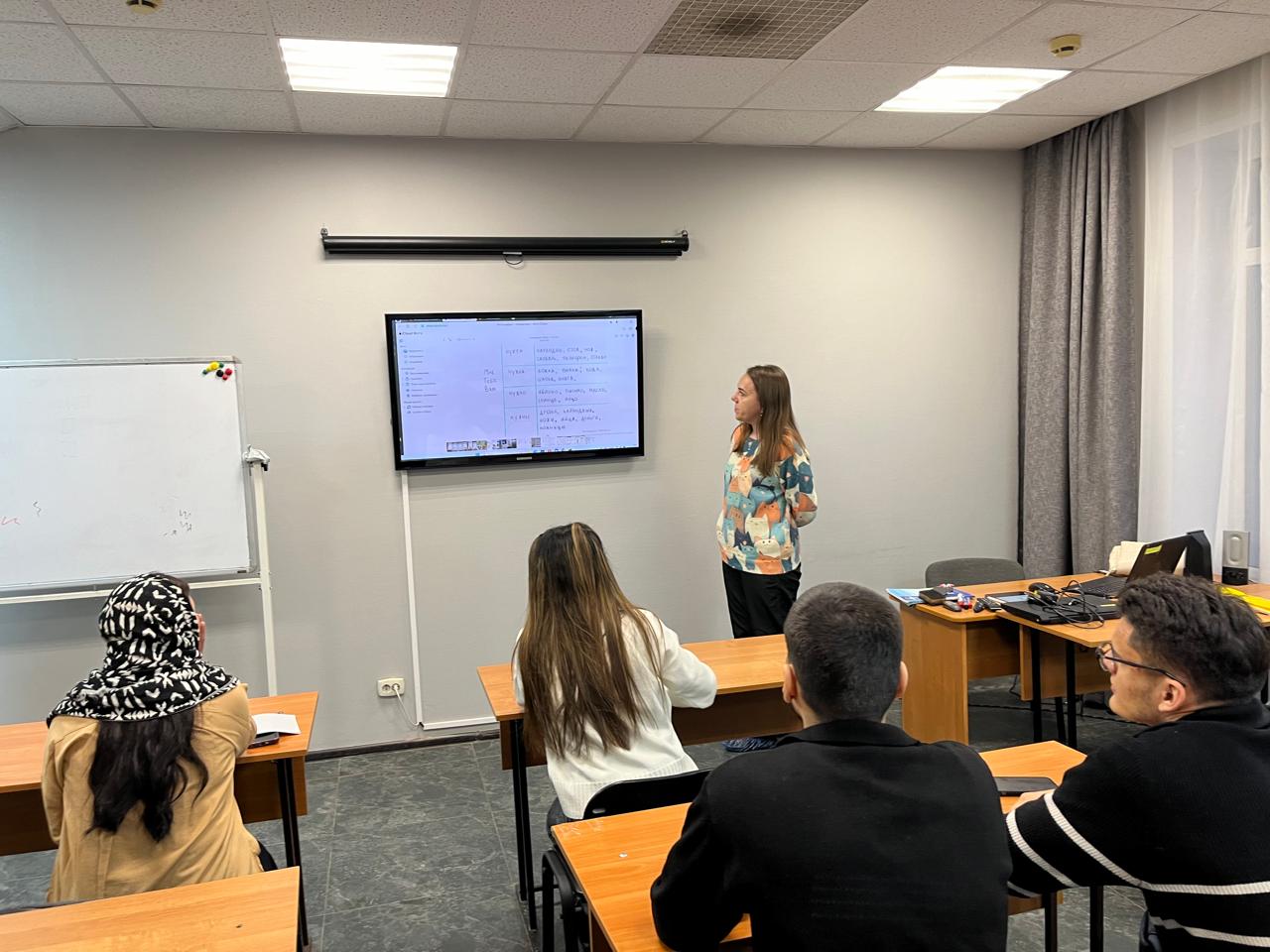 8 февраля состоялось очередное занятие по РКИ в группе иностранных студентов на площадке учебного центра "Алгоритм-С" с участием переводчика со знанием китайского, узбекского, таджикского и киргизского языков. На занятии изучали конструкцию "(кому?) нужно (что?)" и лексику по теме "Еда".