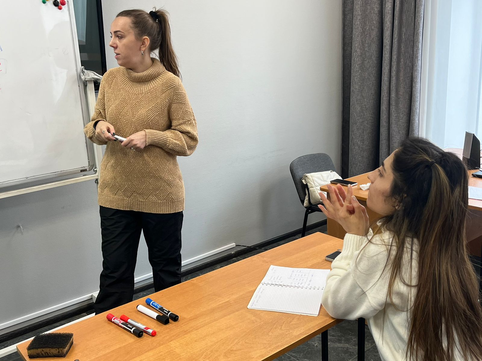 15 февраля состоялось очередное занятие по РКИ в группе иностранных студентов на площадке учебного центра "Алгоритм-С" с участием переводчика со знанием китайского, узбекского, таджикского и киргизского языков. На занятии изучали притяжательные местоимения.