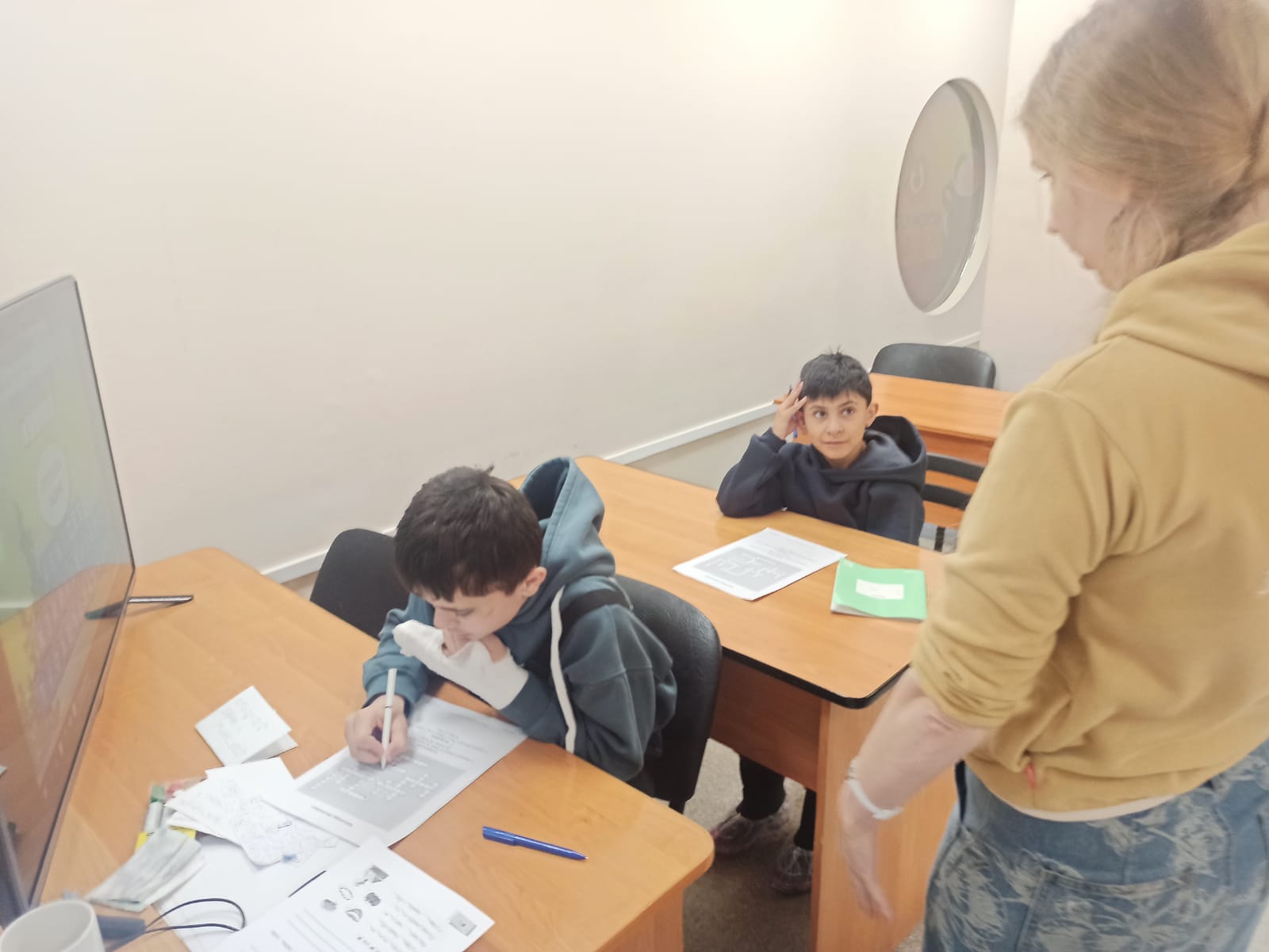 28 февраля прошло очередное занятия по русскому языку как иностранному в детской группе на площадке учебного центра "Алгоритм-С" с участием переводчика со знанием китайского, узбекского, таджикского и киргизского языков. На занятии изучали синонимы в русском языке.