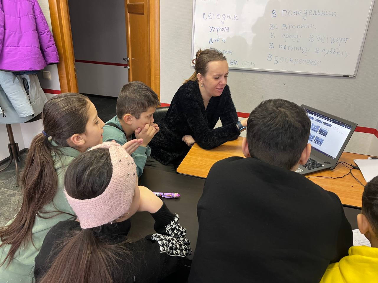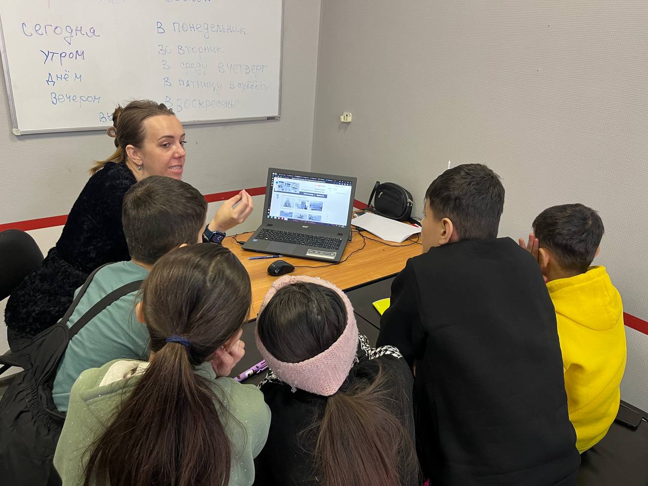 6 декабря прошло очередное занятие по русскому языку как иностранному в детской группе на площадке учебного центра "Алгоритм-С" с участием переводчика. На занятии изучали конструкции выражения мнения на русском языке.