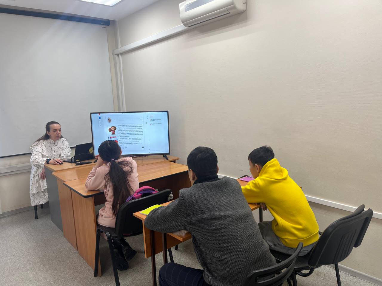 14 декабря прошло очередное занятие по русскому языку как иностранному в детской группе на площадке учебного центра "Алгоритм-С" с участием переводчика. На занятии изучали прилагательные.