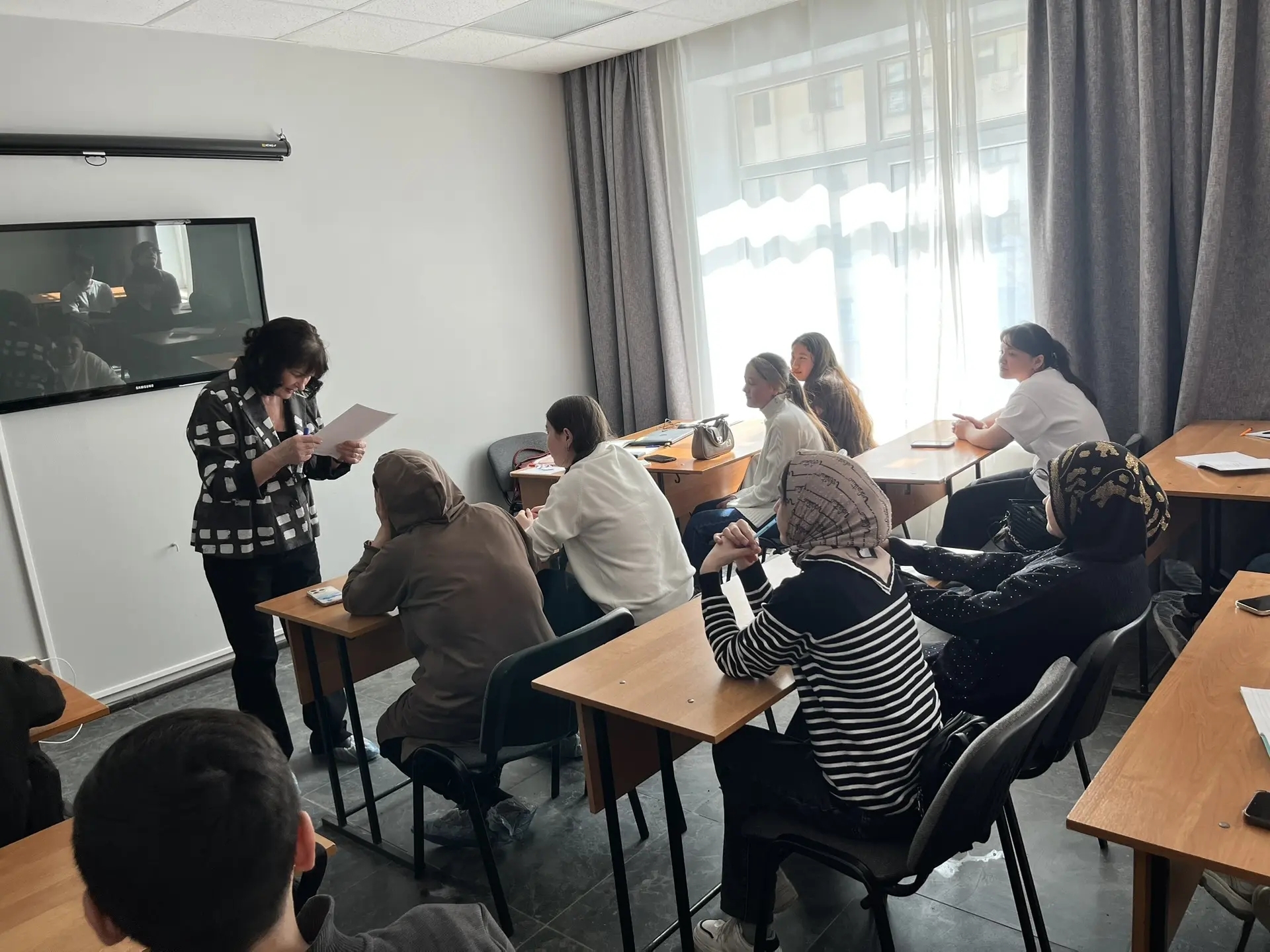 21 апреля состоялось очередное занятие по РКИ в группе иностранных студентов на площадке учебного центра "Алгоритм-С" с участием переводчика. На занятии изучали творительный падеж прилагательных.