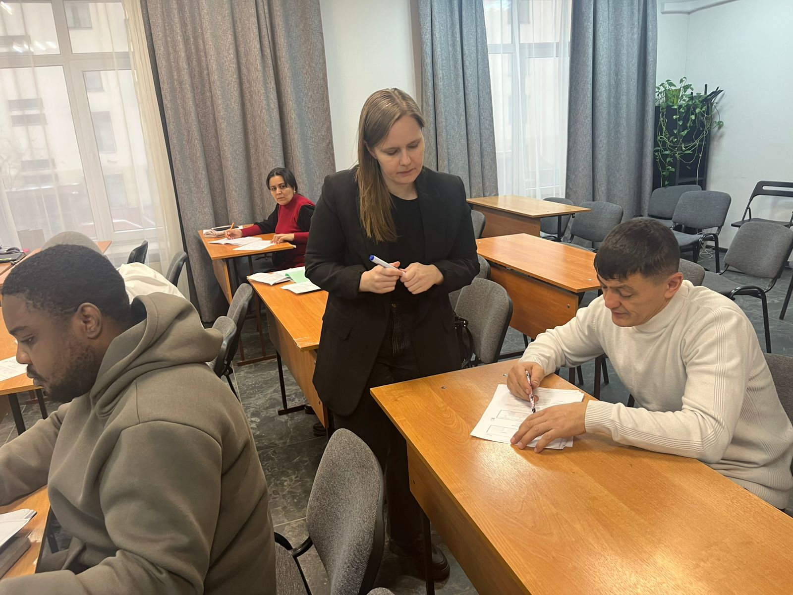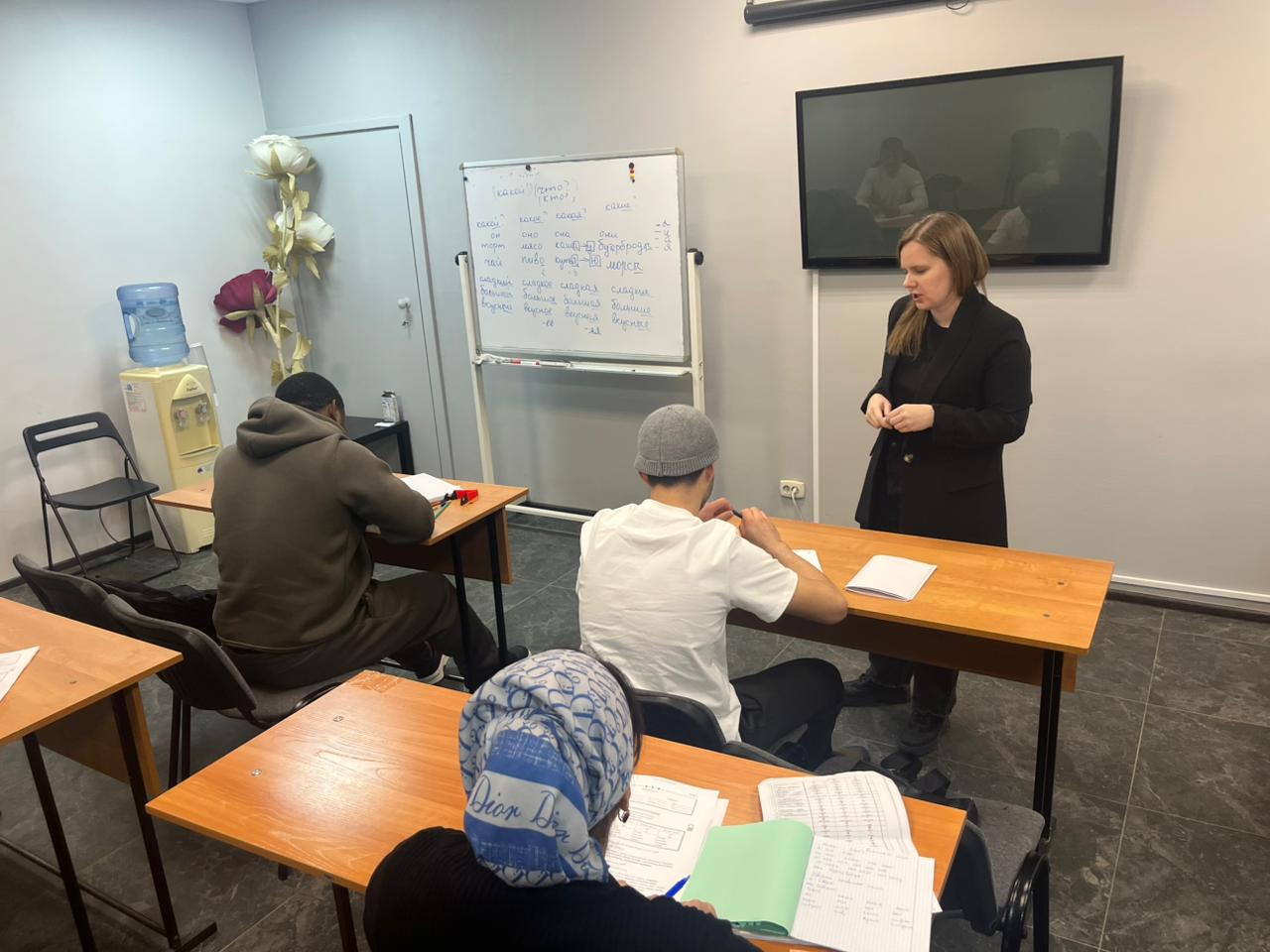 23 ноября состоялось очередное занятие по РКИ в группе иностранных студентов на площадке учебного центра "Алгоритм-С" с участием переводчика. На занятии изучали употребление прилагательных и наречий в русском языке.