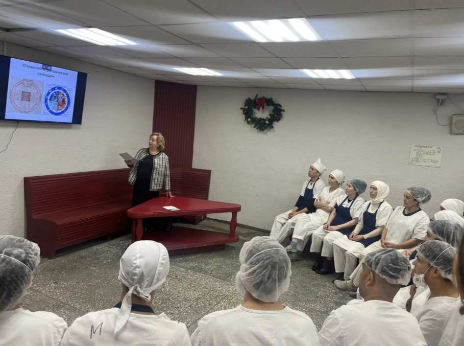 23 декабря на площадке АО Хлебообьединение "Восход" для иностранных рабочих предприятия прошло первое занятие в рамках проекта "Доступно о важном". Тематическое занятие, посвященное истории и традициям празднования Рождества и Нового года в России, провела историк УКЦ "Алгоритм-С".